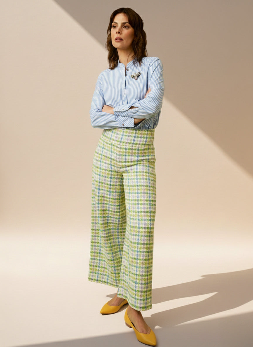 Die handgefertigte Hose "CHARLIE" von COCO LORES ist das perfekte Statement-Piece für Businessmode für Frauen. Mit ihrem weiten Bein und hohem Bund verleiht sie eine elegante und feminine Silhouette. Inspiriert von der Chanel-Optik ist sie knöchellang und unglaublich weich und bequem zu tragen. Diese Hose ist der perfekte Begleiter für den Frühling und kann sowohl im Büro als auch in der Freizeit getragen werden. Verleihen Sie Ihrem Look mit der Hose "CHARLIE" von COCO LORES eine gehobene und stilvolle Note.