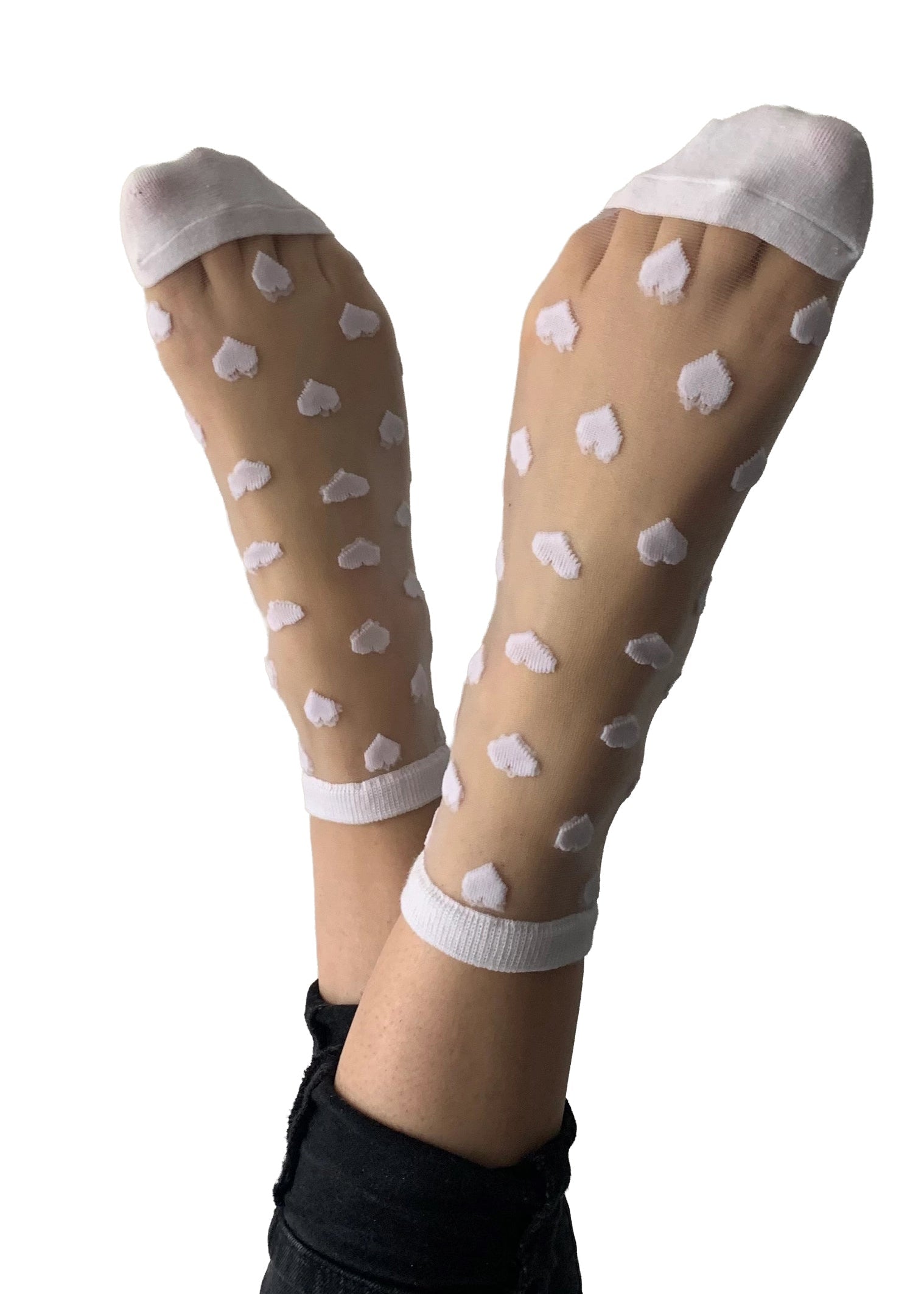 Transparente Socken mit weißen Herzen